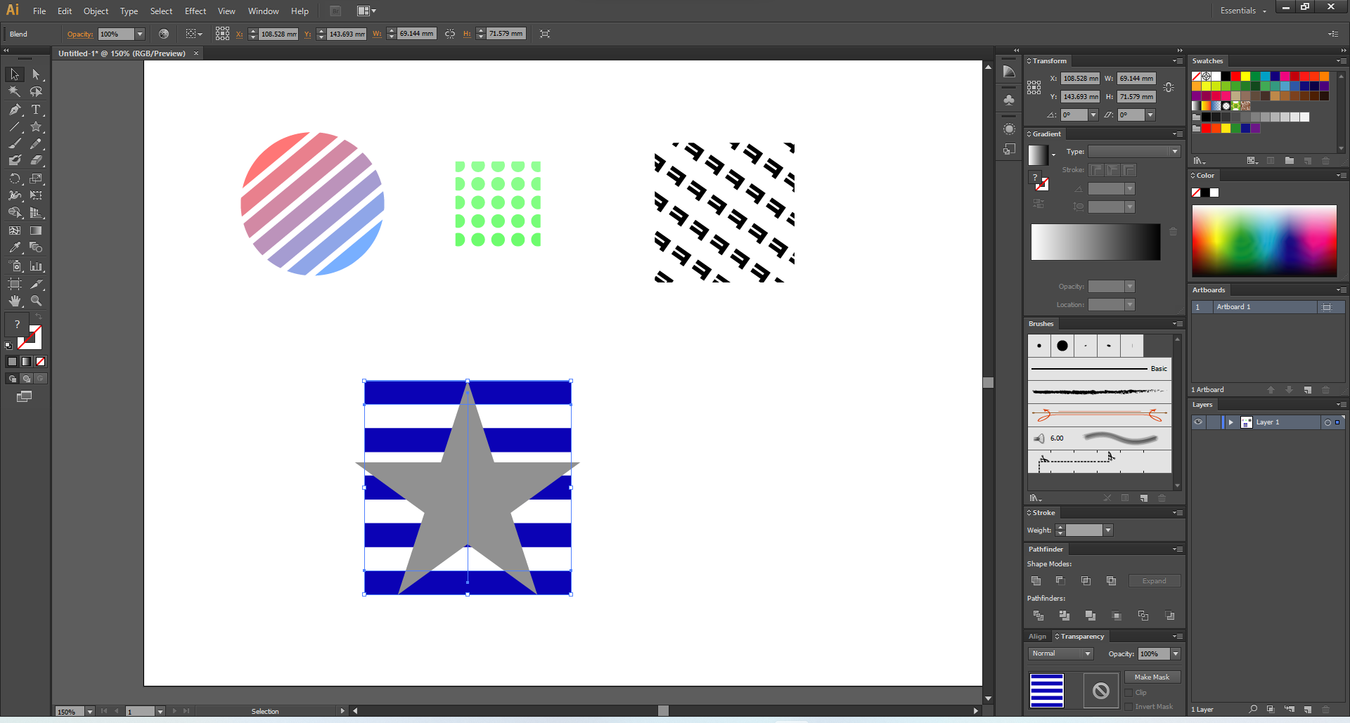 그저 Ctrl + 7을 누르면 이렇게 스트라이프가 별에 클리핑 마스크가 씌워진 것을 볼 수 있습니다.