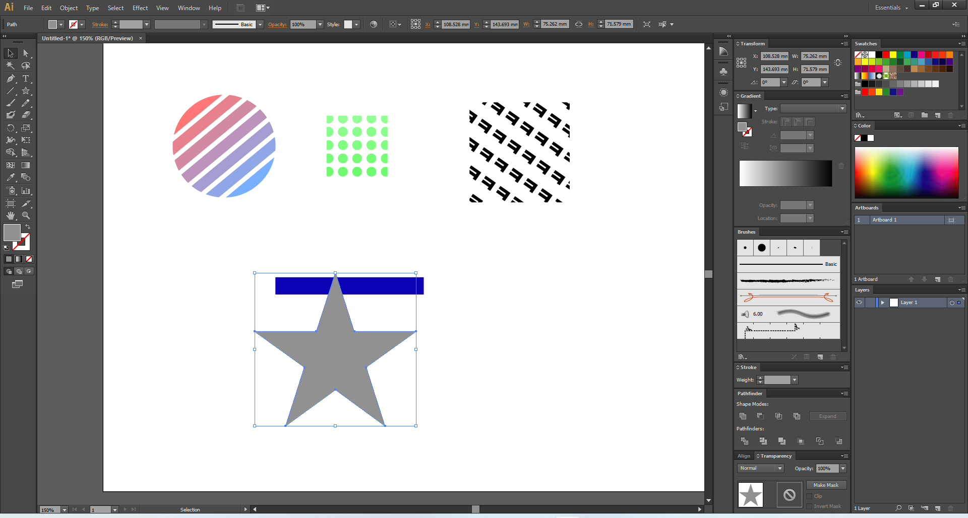 지금 상황에서는 들어갈 오브젝트인 스트라이프가 틀이 될 별 아래에 위치해 있기 때문에