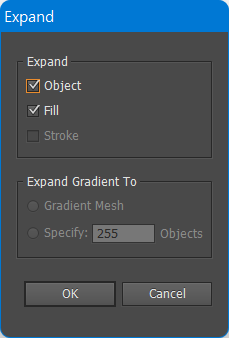이제 위쪽 컨트롤 패널에서 Object - Expand 를 클릭해 확장을 해 줍니다.