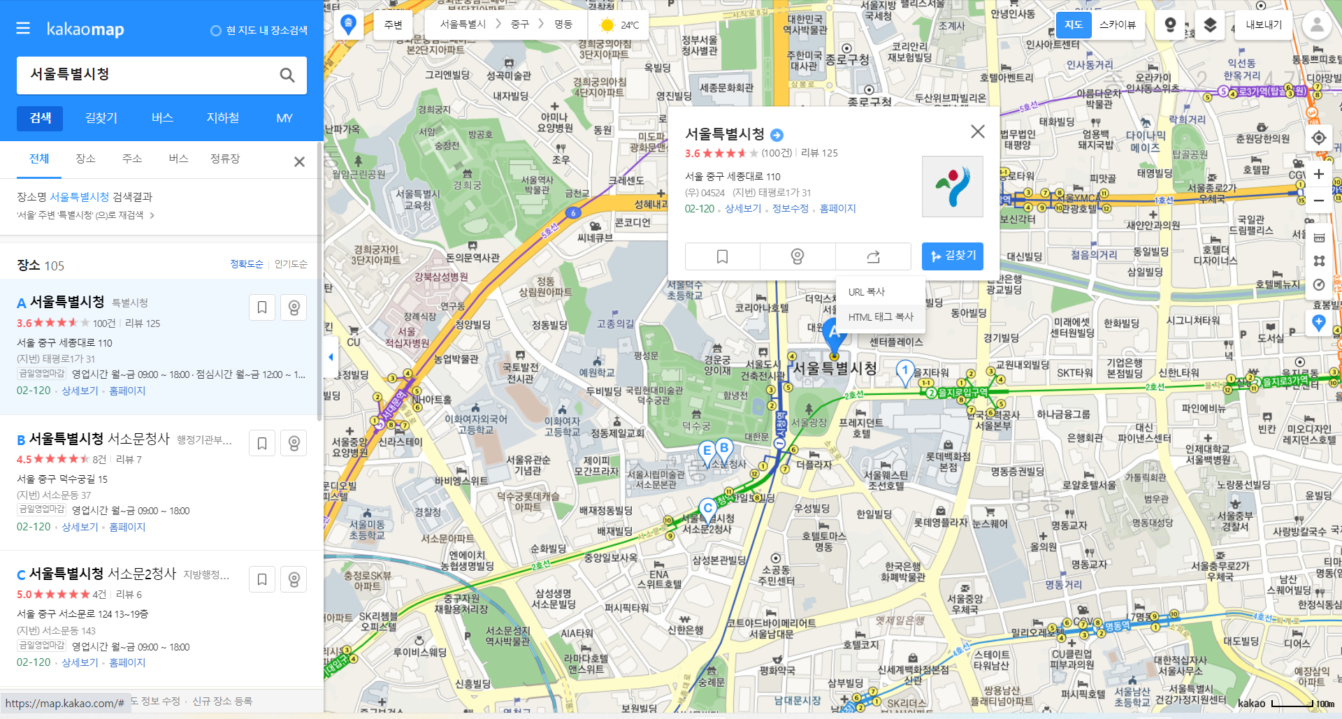자, 우선 카카오맵에서 지도를 추가하고 싶은 위치를 검색해 줍니다!