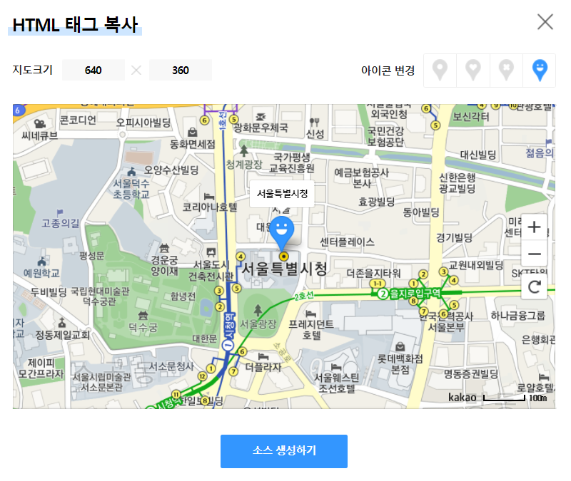핀을 찍을수도 있고, 그냥 지도만 넣을 수도 있죠.