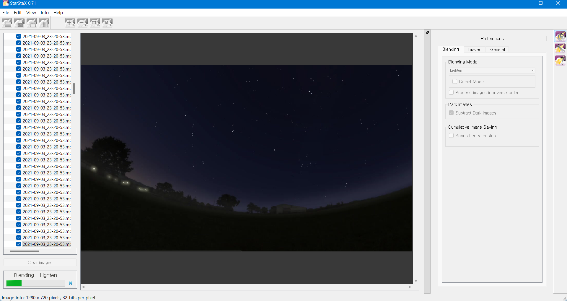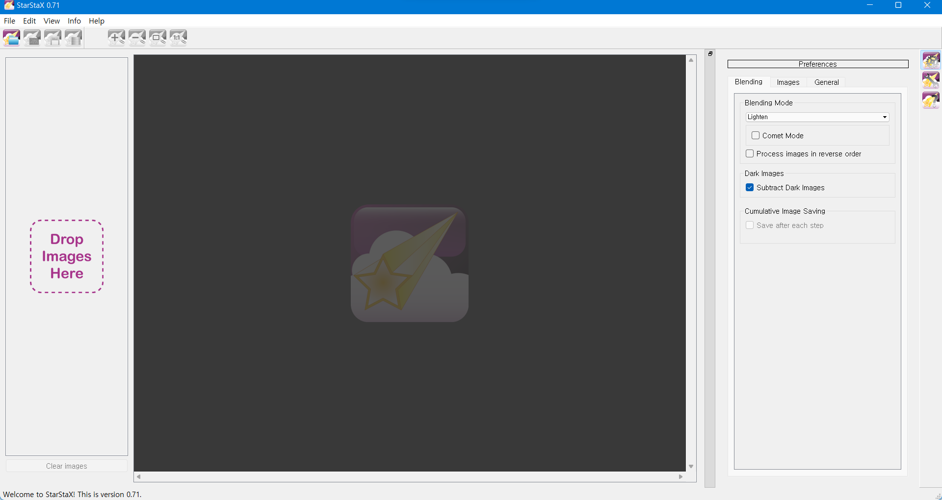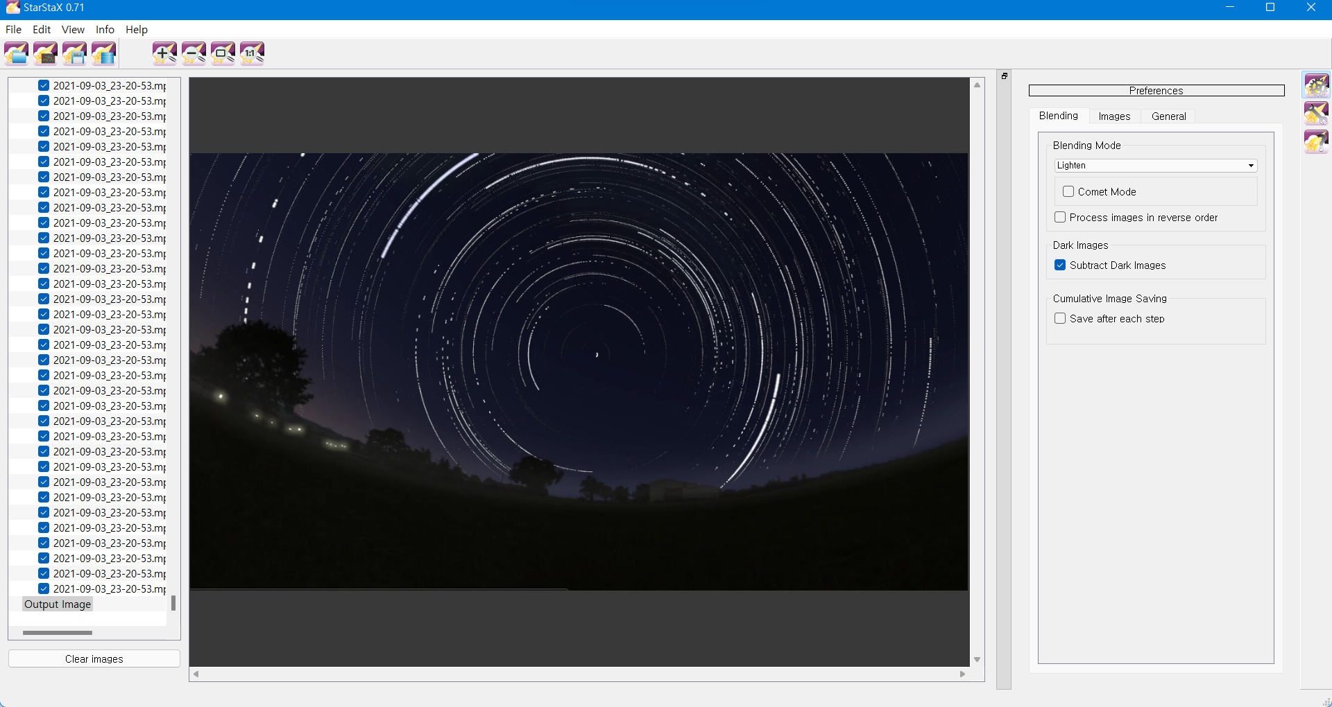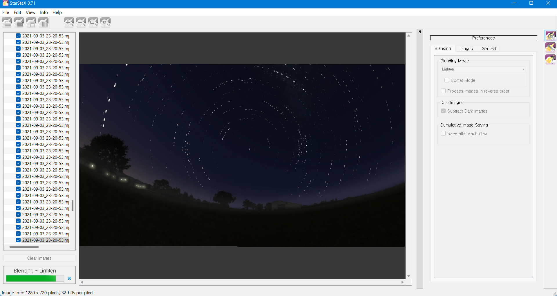 이제 StarStaX라는 프로그램을 이용해 이 사진들을 하나의 사진으로 합쳐 주도록 합시다.