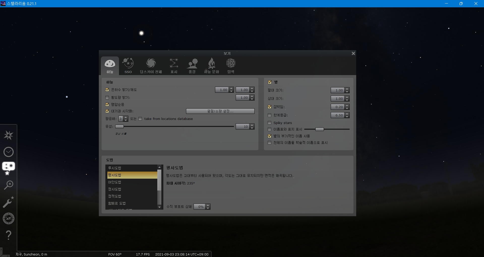 스텔라리움의 밤하늘만 보이도록 설정을 해 주세요.