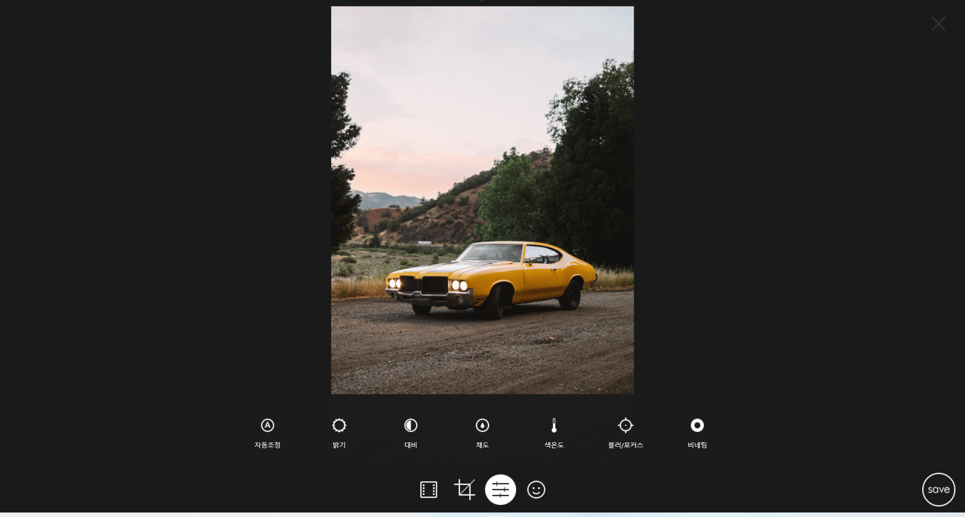 간편하게 사진을 보정하려면, 제일 왼쪽에 자동조정 이라는 버튼을 눌러주세요!