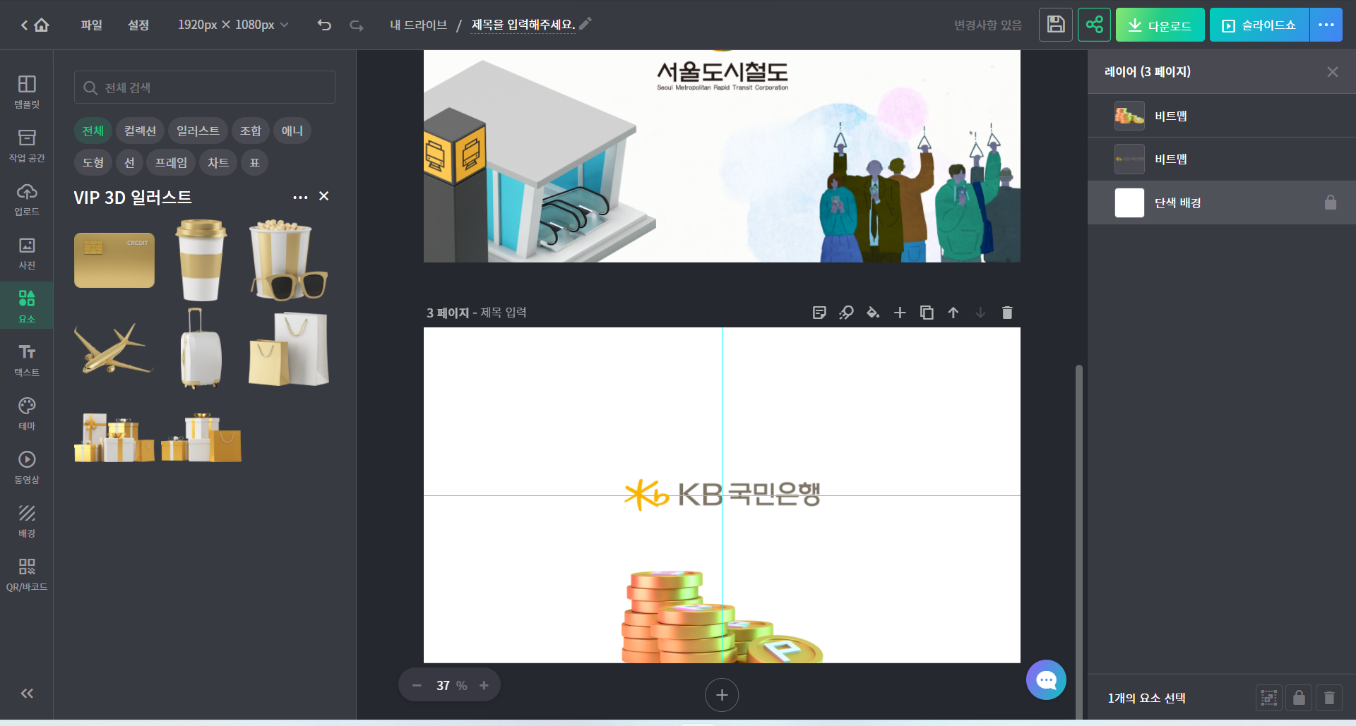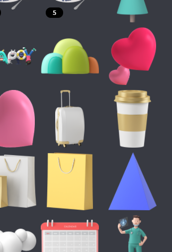 이렇게 정말 다~ 만들어진 3D 일러스트 요소들이 정말 많더라고요!
