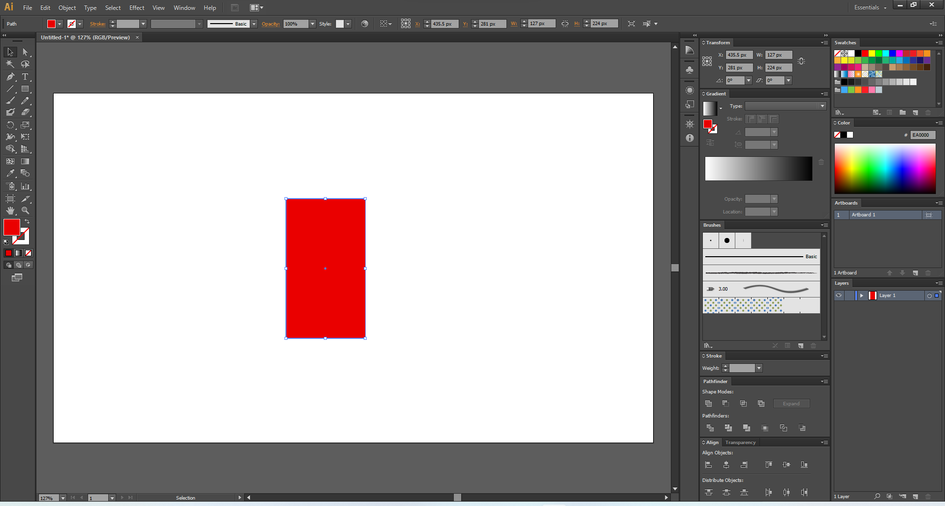 이번에는 빨간색 직사각형을 선택하고